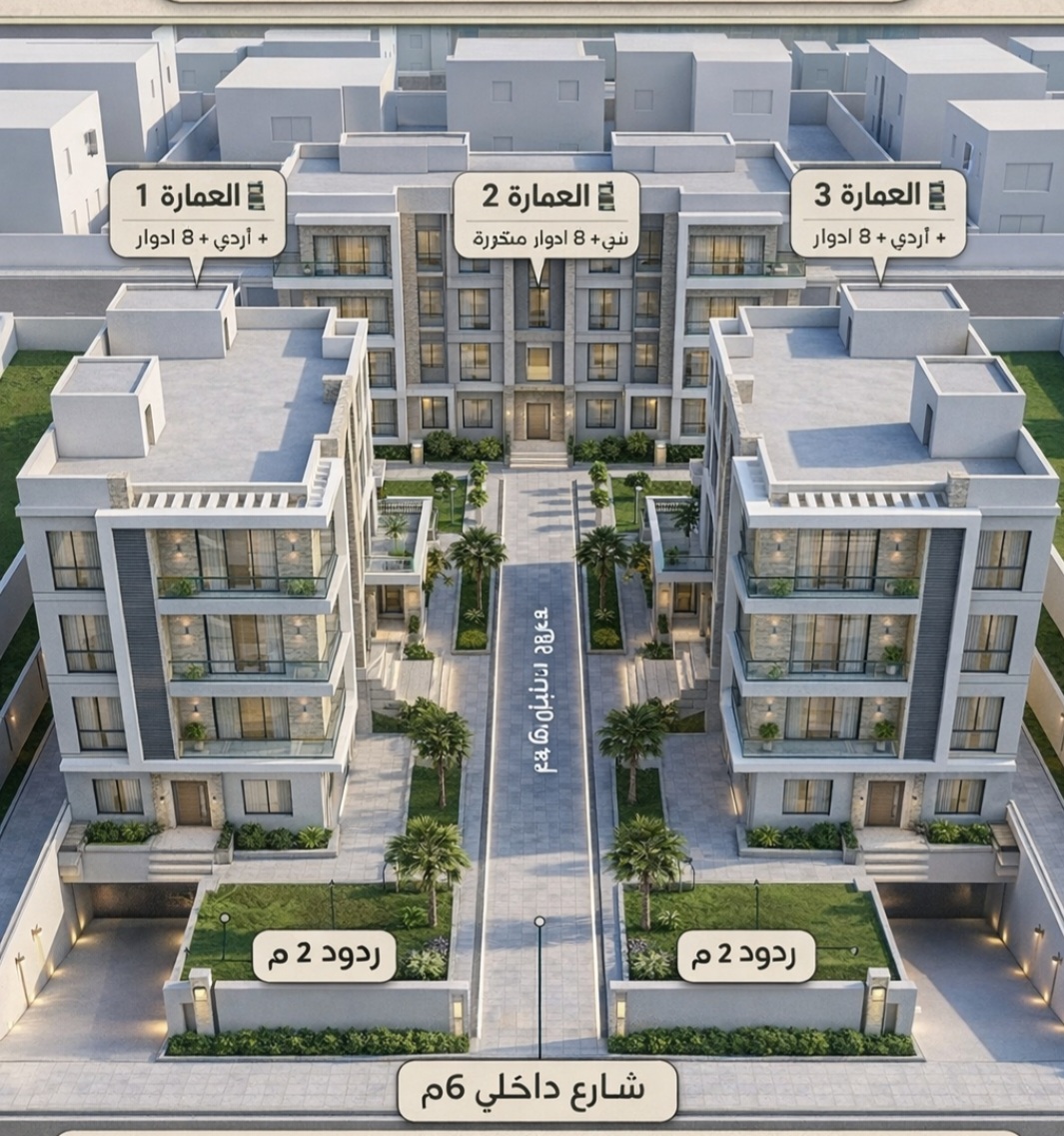 فرصة استثمارية قوية أرض مميزة للبيع في اتحاد الوفاق الموقع اتحاد الوفاق العبور الجديدة المساحة 1710 متر نسبة البناء 40 عدد الأدوار بدروم أرضي 3 أدوار متكررة لا توجد مهلة بناء مميزات استثنائية مطلة مباشرة على منطقة الخدمات شارع رئيسي بعرض 18 متر تصلح لمشروع سكني راق موقع واعد بزيادة سعرية قوية خلال الفترة القادمة سعر مميز مناسب لحجم وموقع القطعة فرصة حقيقية للمستثمرين الباحثين عن عائد قوي مرفق رسم لتقسيم الارض الي 3 عمارات