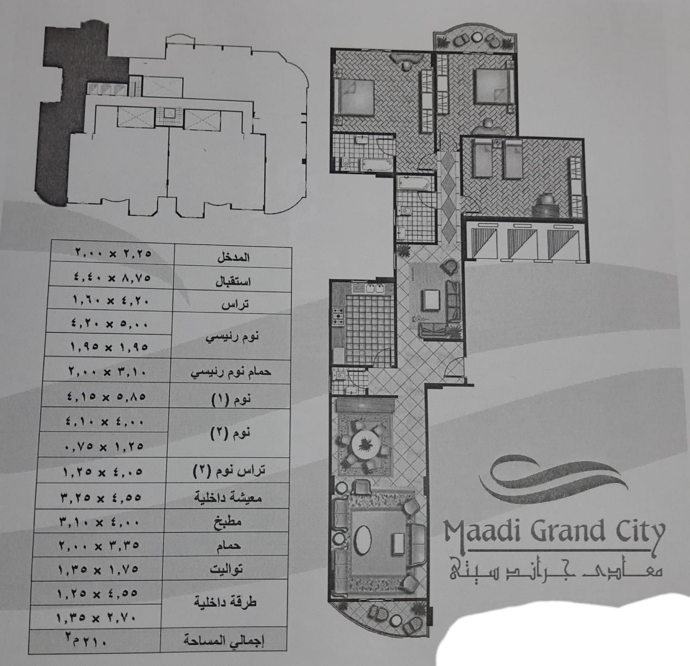 شقة للبيع تقسيمة مميزة 210 م جراند سيتي