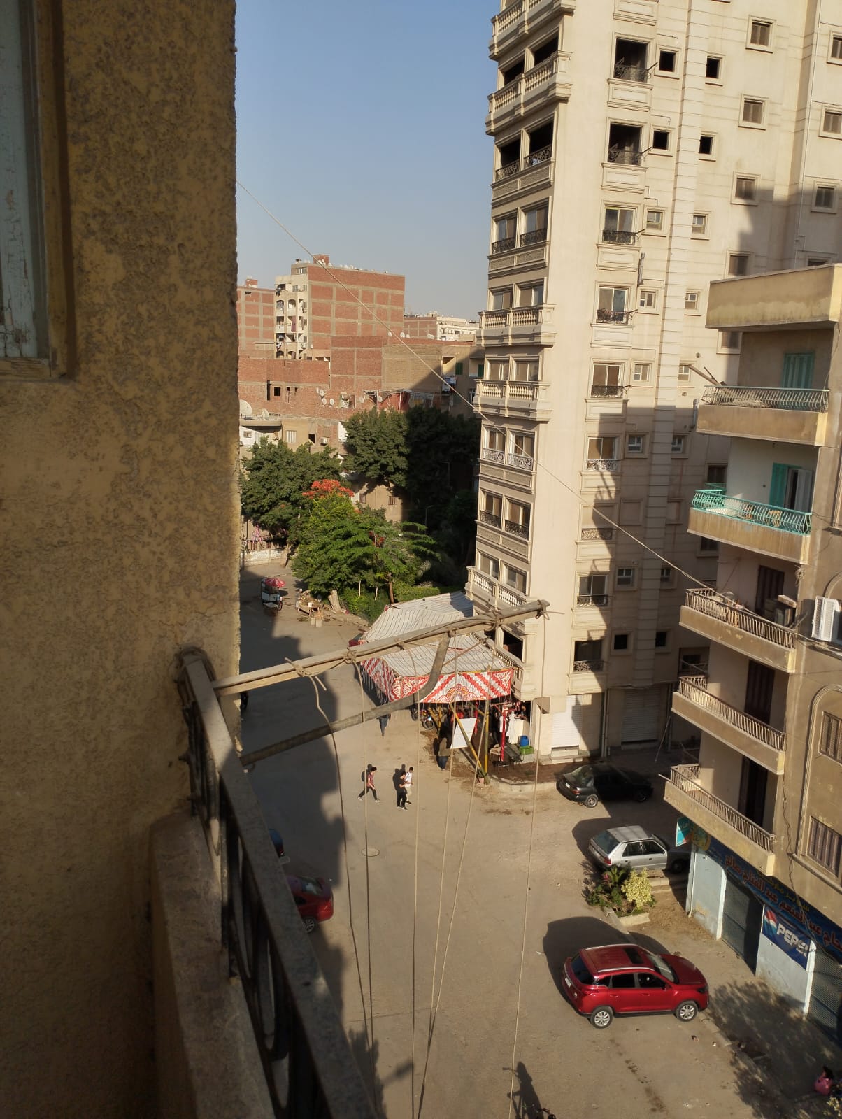 شقه دور خامس اخير 3 غرف منهم غرفه مفتوحه علي الرسبشن وحمام ومطبخ وباكونه تطل علي جامع الميدان مرخصه وجود عداد غاز مياه كهرباء